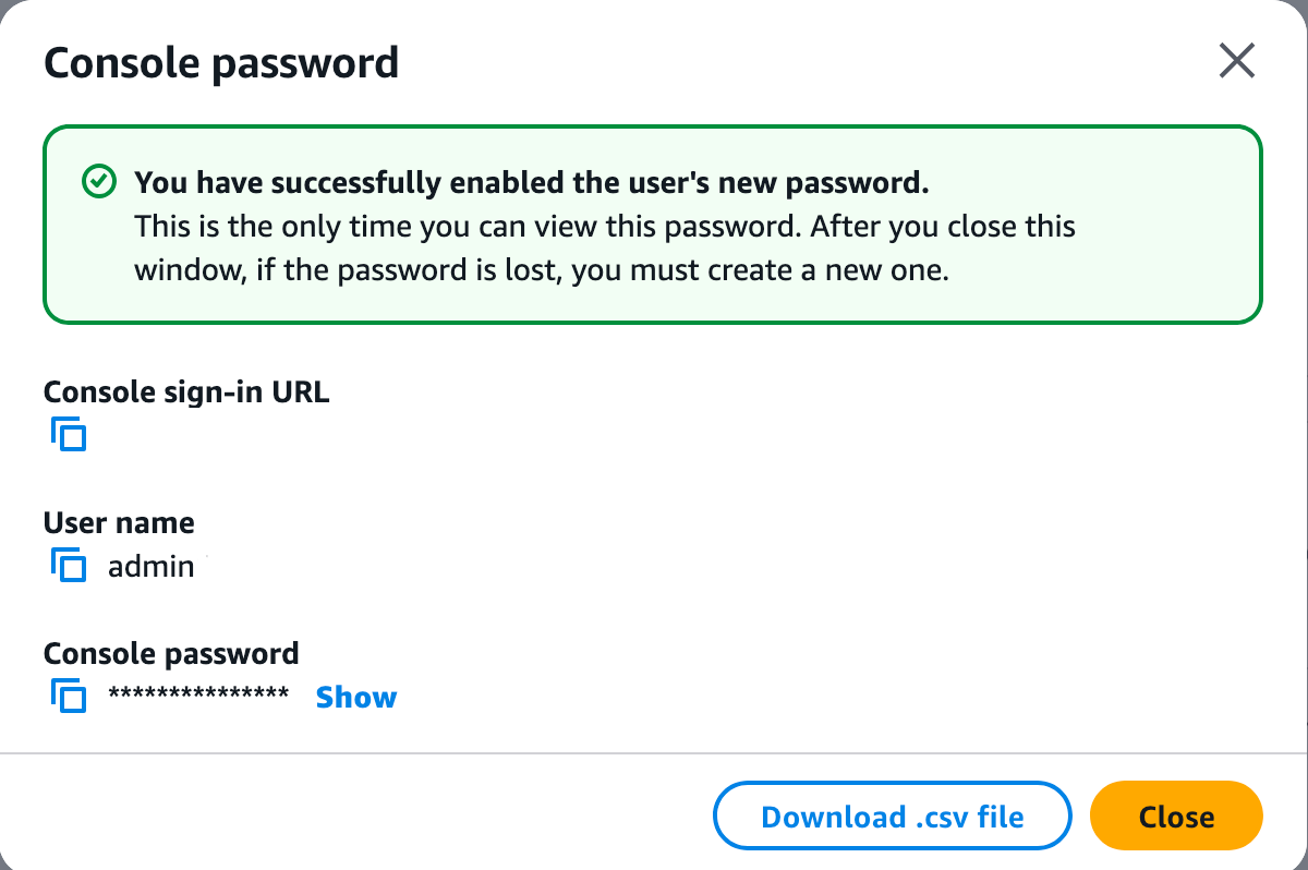 Now, we can log in to the AWS console using the above credentials as the admin user.