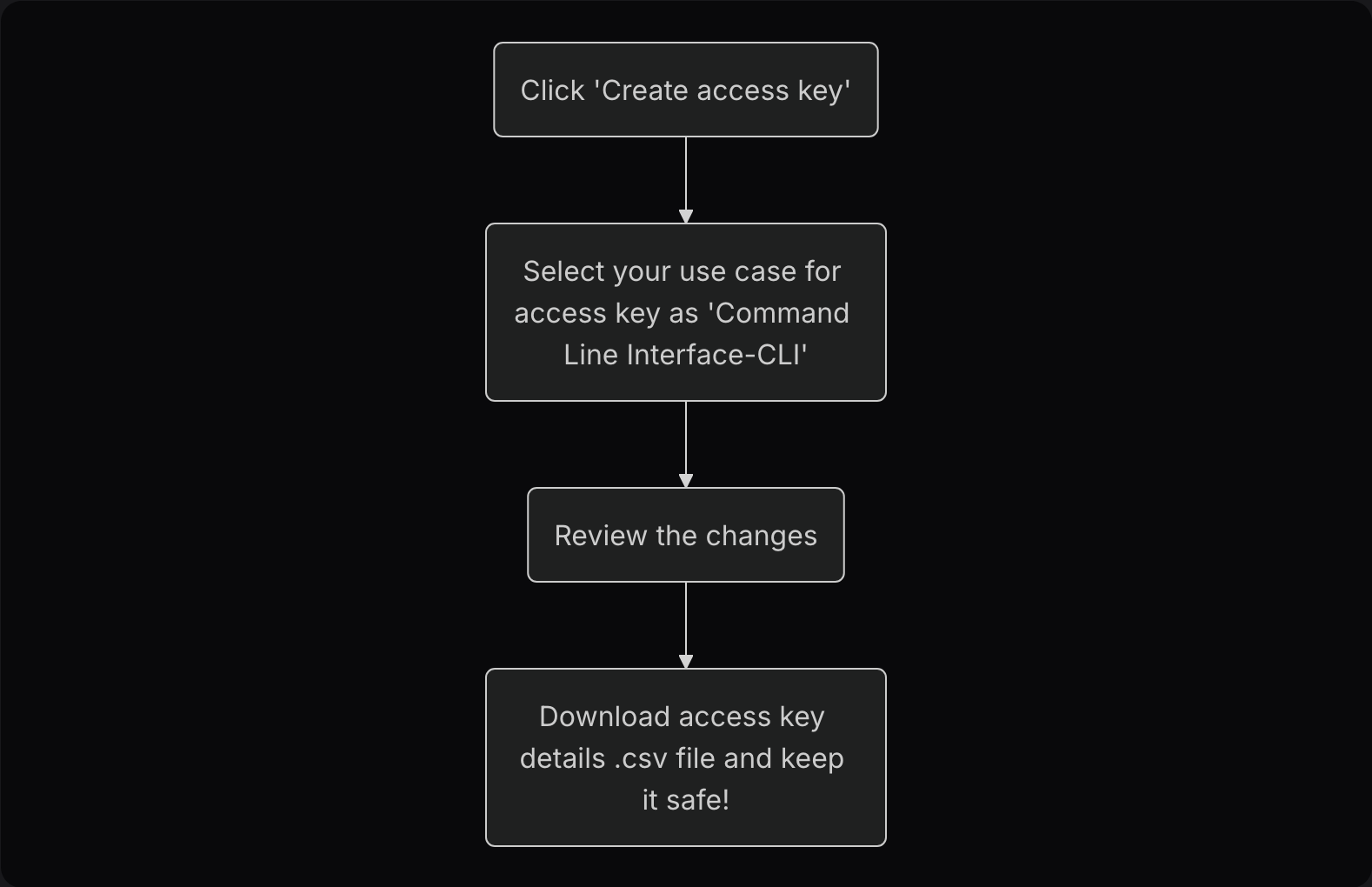 AWS Management Console becomes tedious for advanced use cases. For scripting and repeatable interaction needs, AWS CLI is more convenient. For this, we need to get an access key for the user.