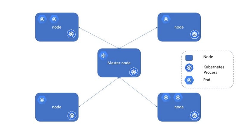Among these nodes, a node is chosen as the master node, which keeps the record of each node and associated pod.