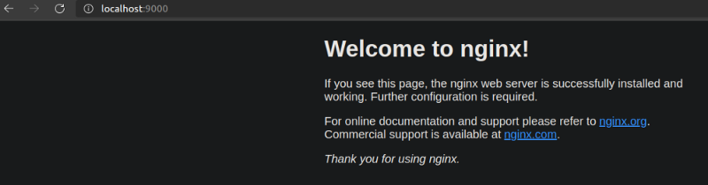 This essentially, forwards the traffic on container port 80 to host port 9000.