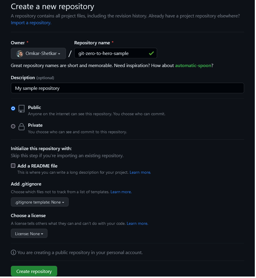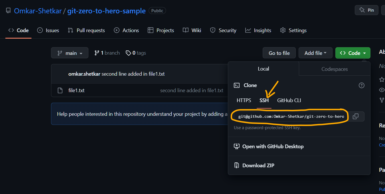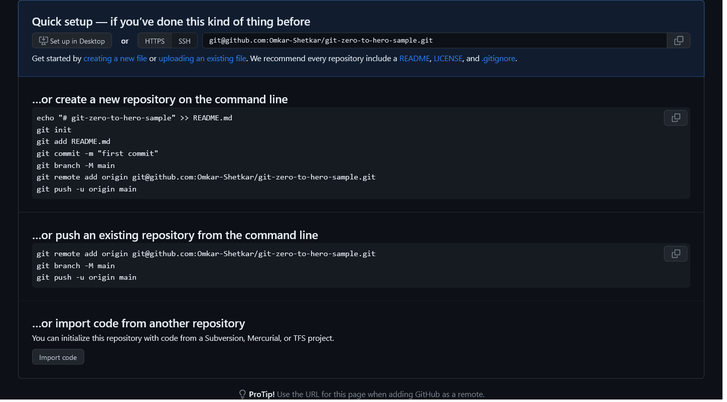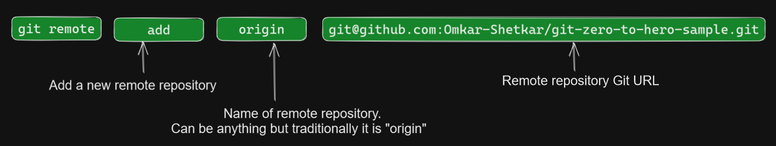 $ git remote add origin git@github.com:Omkar-Shetkar/git-zero-to-hero-sample.git