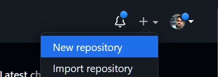 We need to create a repository on GitHub to store our changes. For this select New repository option.
