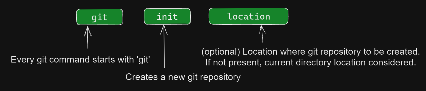 With git init we have created an empty Git repository. Although it contains .git directory which holds all git database, we hardly need to worry about it anytime.