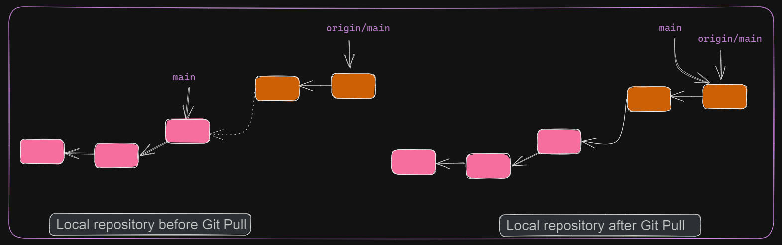 To understand git pull, we need to know about git merge and git rebase.
